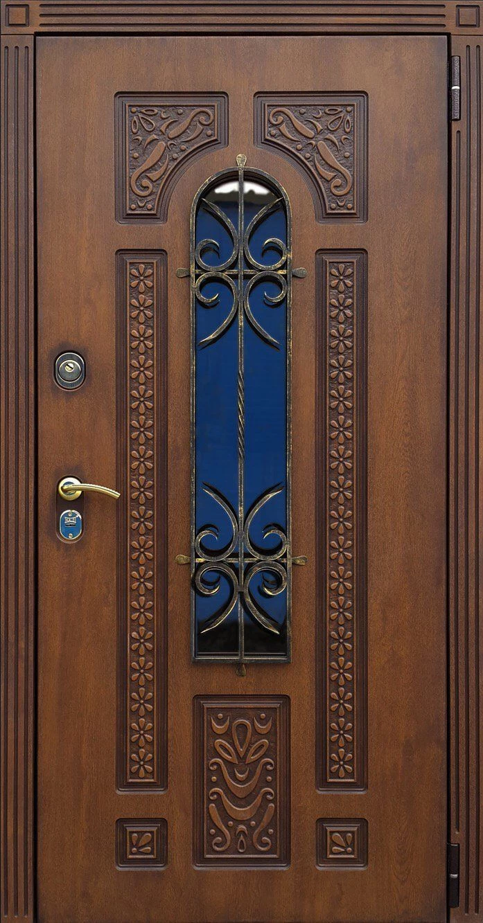 Основой отделки самой двери может служить массив натурального дерева (дуба, ясеня, сосны), натуральный шпон, МДФ-панель. Если речь идет о двери, которая будет устанавливаться на улицу, поверхность должна быть обработана атмосферостойкими материалами.