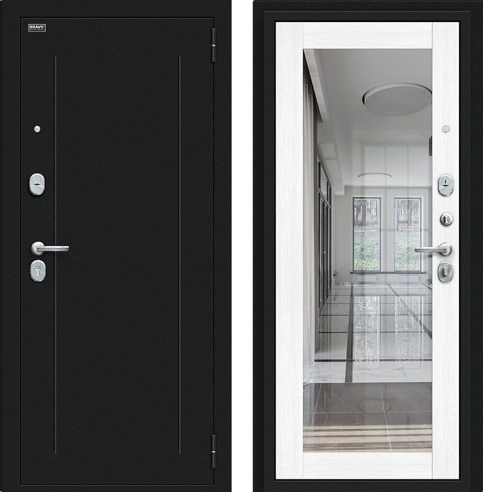 Надежная входная Дверь Браво Флэш Букле черное/Snow Melinga премиум класса по цене 33 501 руб. Большая толщина стали защитит от проникновения в ваш дом, квартиру или коттедж. Используется очень качественная фурнитура: замки, цилиндры, ручки, защелки. Покрытие и отделка двери изготовлено под внимательным контролем производителя. Дверь имеет долгий срок службы и гарантию.