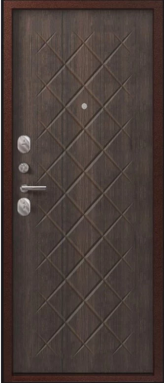 Надежная входная Дверь V-02 медь антик - венге премиум класса по цене 37 401 руб. Большая толщина стали защитит от проникновения в ваш дом, квартиру или коттедж. Используется очень качественная фурнитура: замки, цилиндры, ручки, защелки. Покрытие и отделка двери изготовлено под внимательным контролем производителя. Дверь имеет долгий срок службы и гарантию.